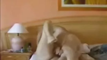 Un homme chauve déchire une putain de blonde sur le lit